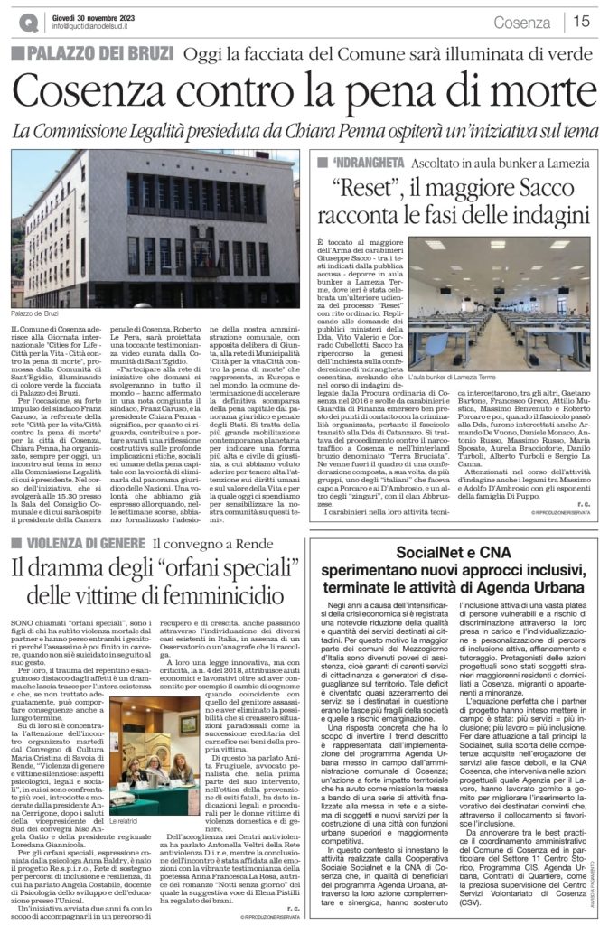 Una risposta concreta che ha lo scopo di invertire il trend descritto è rappresentata dall’implementazione del programma Agenda Urbana messo in campo dall’amministrazione comunale di Cosenza; un’azione a forte impatto territoriale che ha avuto come mission la messa a bando di una serie di attività finalizzate alla messa in rete e a sistema di soggetti e nuovi servizi per la costruzione di una città con funzioni urbane superiori e maggiormente competitiva.